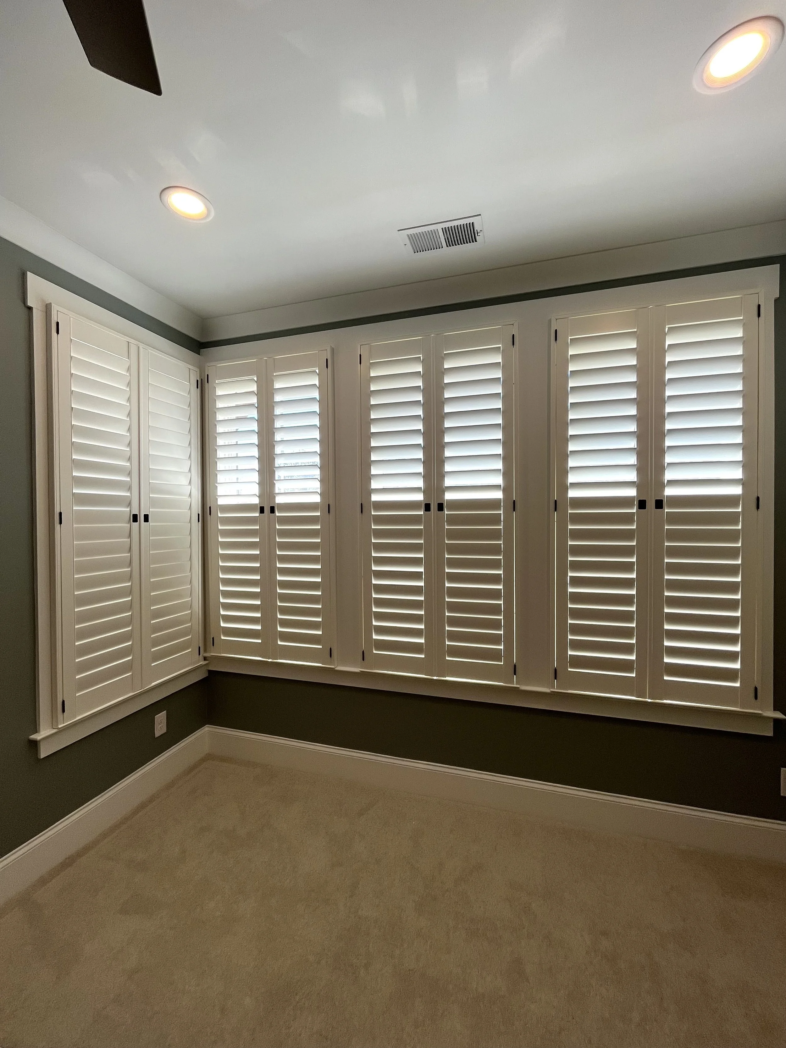 Our custom plantation shutters give Locust homes classic elegance with practical benefits: privacy, durability, and long lasting investment.